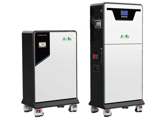 Estructura vertical compacta que integra batería LiFePO4, inversor híbrido y controlador solar MPPT. Ahorra espacio, fácil instalación en el suelo, apariencia elegante.